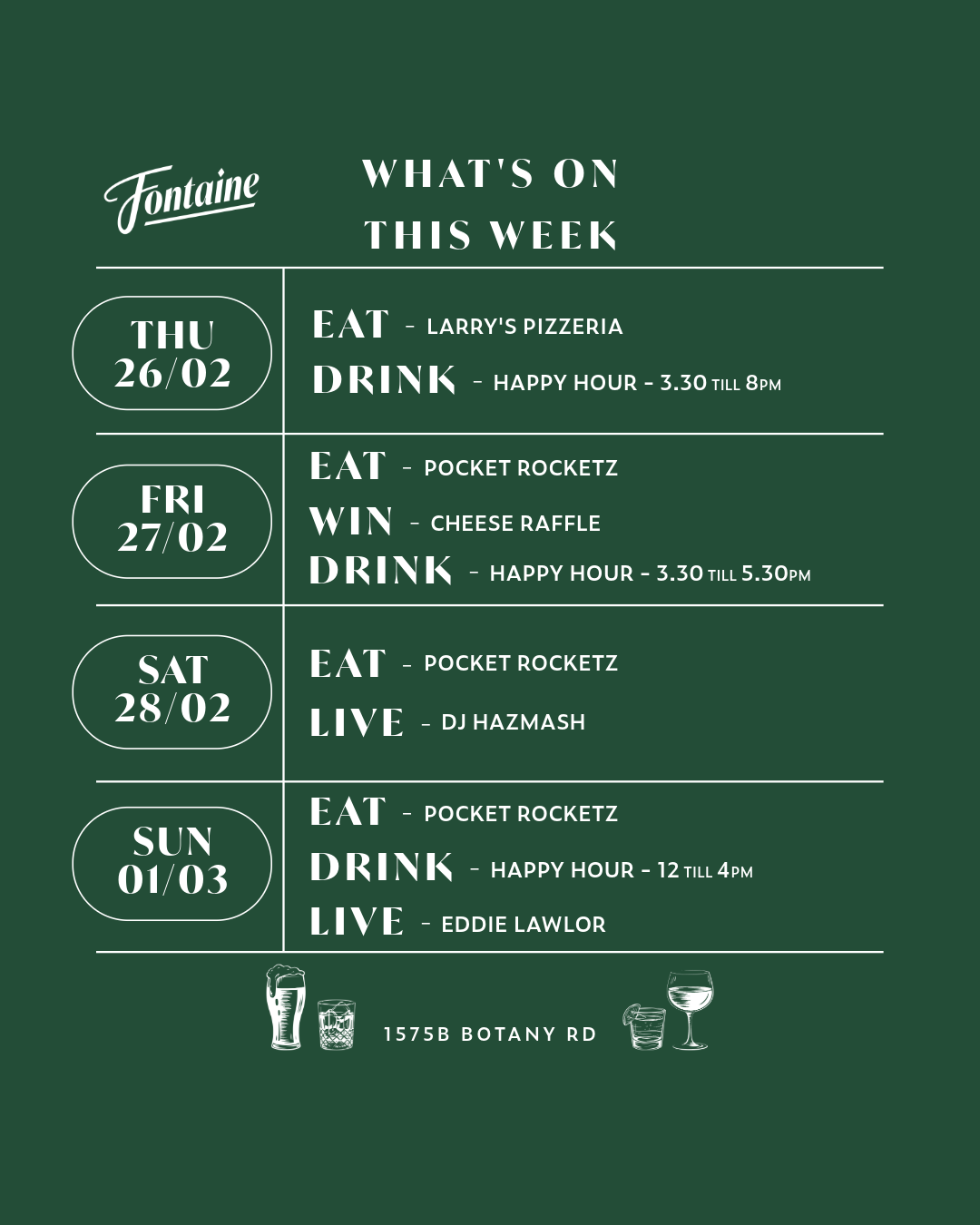 Thu 26/02: 3:30pm till 8:00pm